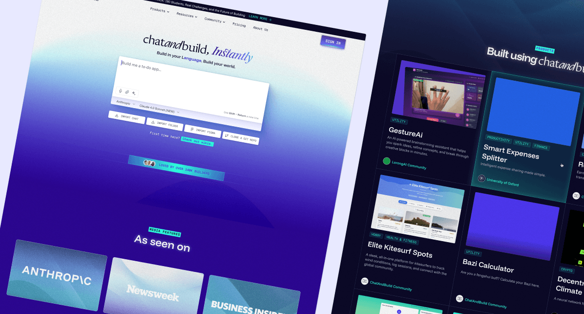 Brand-aligned website and collateral that conveys ChatAndBuild’s vision effectively